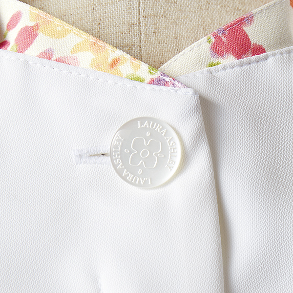 優雅なプリントで知られる英国のライフスタイルブランド、ローラ アシュレイ。その美しいの華の彩りを、襟や胸もとにさりげなく咲かせました。やわらかな色合いと可憐な愛らしさが、着る人の表情を鮮やかに引き立てます。
