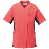 【2026年最新白衣-FOLK/フォーク-7121SC-3】男女兼用ジップスクラブ(カメリアピンク×ダークネイビー)【ライトフィックス】