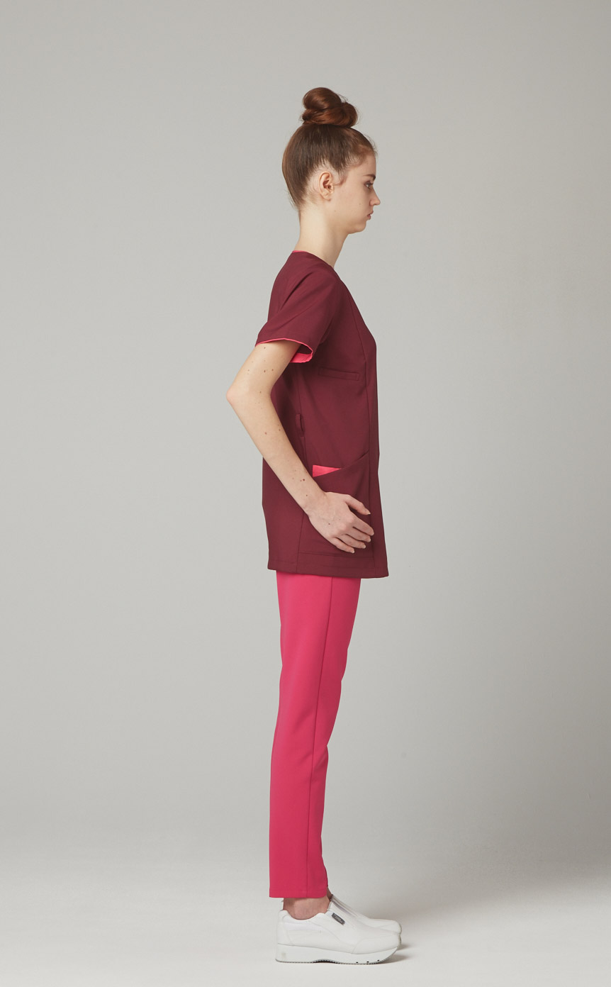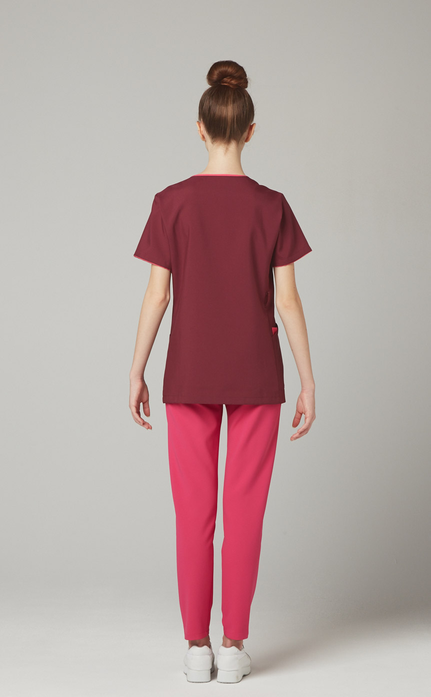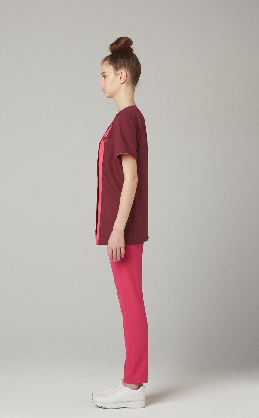 白衣からスクラブへ人気が移る傾向を捉え、欧米体型で作られた輸入スクラブフォルムの欠点を