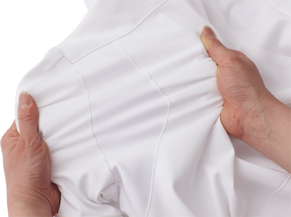 制菌性、制電性、ストレッチ性、透け防止効果、【配色部分】吸汗・速乾