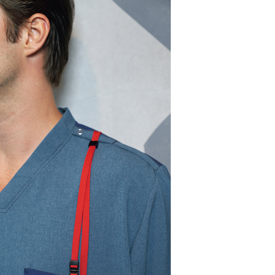 フォークとのコラボレーションにより、日本の医療現場にふさわしいスクラブとなって初登場です。