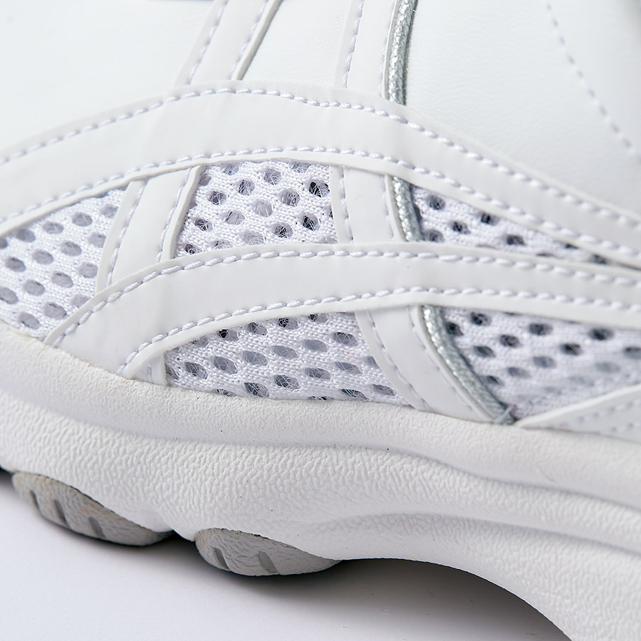 介護医療に従事する人は、一日一万歩を歩くとも言われます。アシックスはそんな働く足を快適にサポートするため、世界で活躍する多くのアスリートを支えてきたテクノロジーを介護・医療用シューズに応用。歩きやすく、心地よく、足への負担が少ないその履き心地で、足元から頑張る人を応援します。パンツスタイルに合わせやすいアシックスストライプをあしらったスポーティタイプ。
