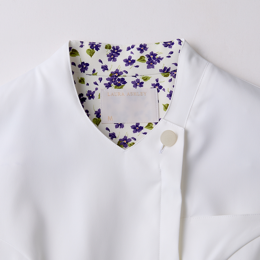 英国の歴史と自然にインスピレーションを得た、ローラ アシュレイの花柄プリント。優雅な花柄を、ユニフォームに咲かせました。花々のやさしさと生命力に満ちた美しい彩りに、袖を通すたび、ときめきがあふれます。コンパクトなVネックでさり気なく胸元をカバー。シンプル中にこだわりを感じるスクラブ。