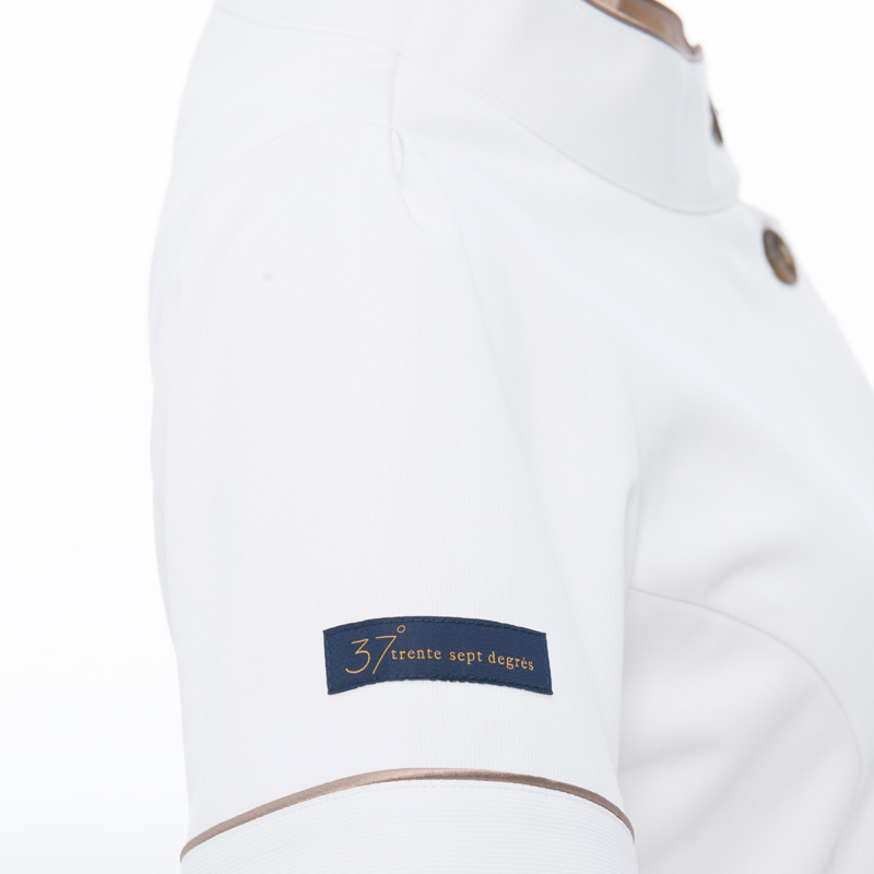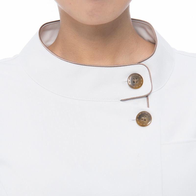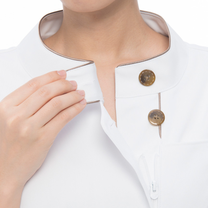 胸元の見えにくいスタンドカラーは、飛沫感染予防にも適しています。