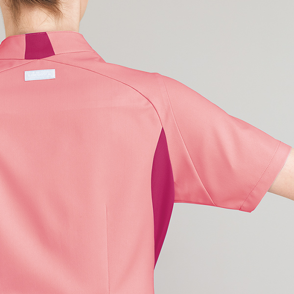 医療現場をカラフルに彩るバイカラーシリーズから、新デザインのジャケットが誕生。切替えが流れるようなラインを描き、よりスタイルアップさせてくれます。低めのスタンドカラーが上品な印象に。