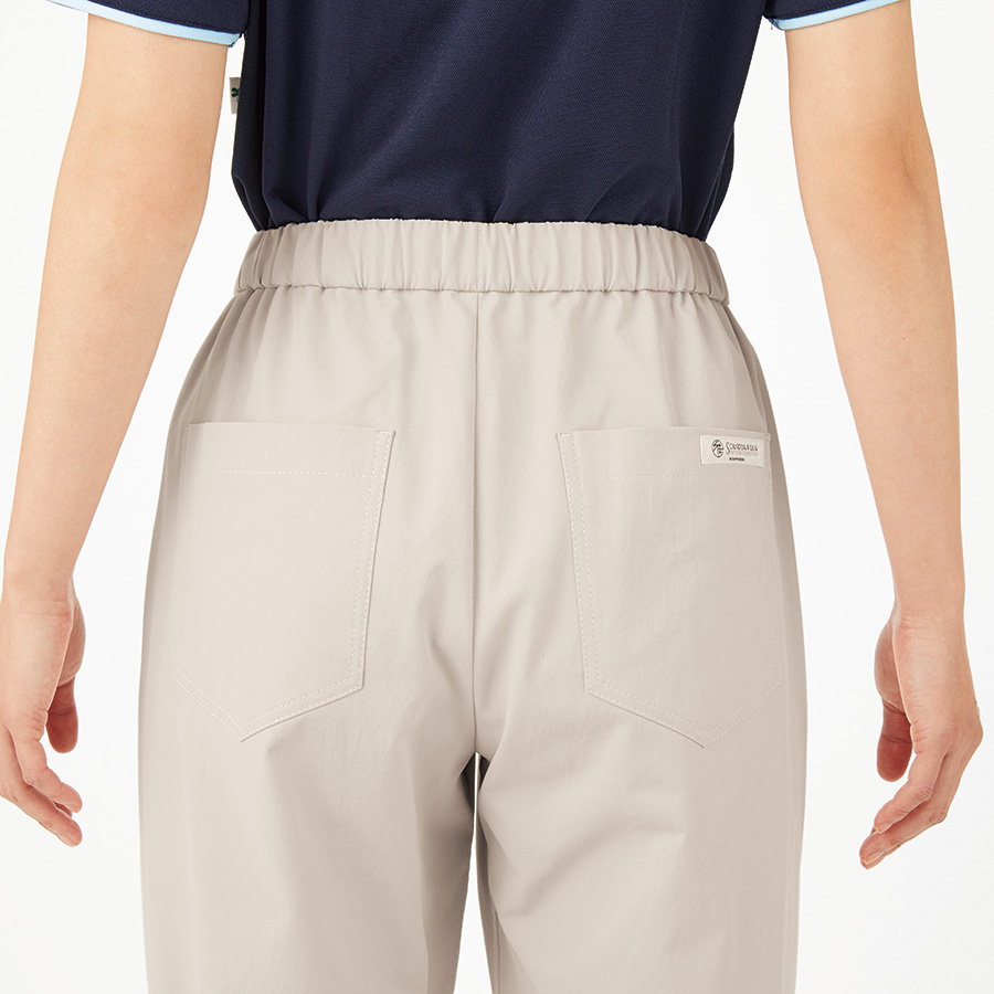 しゃがんでも窮屈感のないストレッチや、ウエストの総ゴム&スピンドルなど機能面も充実し、ストレスゼロの着心地です。