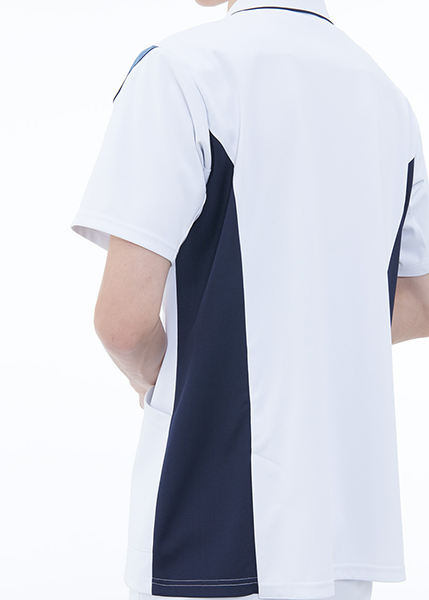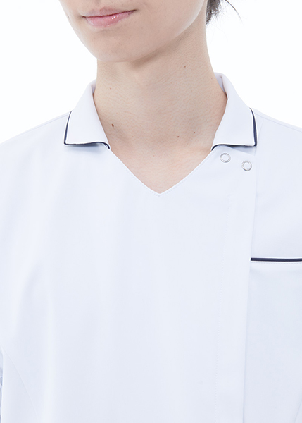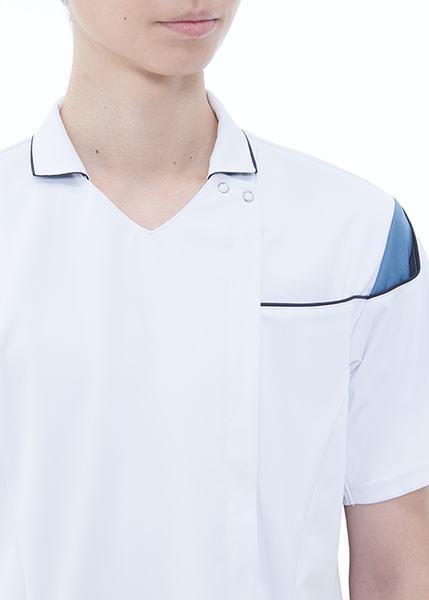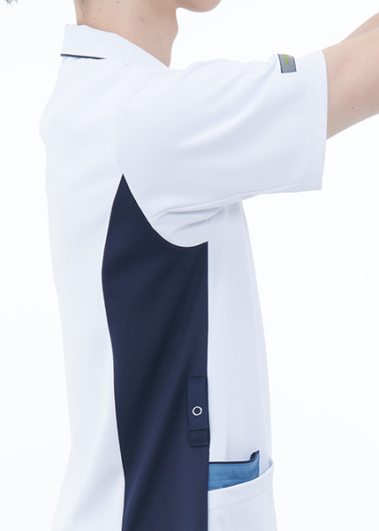 スクラブのシャープな印象と襟付きのキチンとした印象を併せ持つハイブリッドメディウェア。