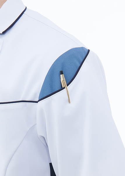 サイドベンツを備え腰回りにゆとりを持たせています。エアアームカットとダブルループを採用。左袖の配色ポケットがデザインポイントになっています。▼▽▼ 商品の詳細情報はナガイレーベン公式サイトよりご覧いただけます ▼▽▼