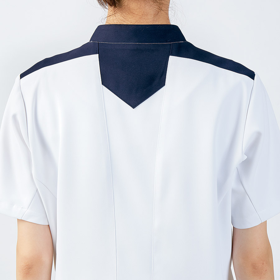 表情を引き締めるミニマムな襟とシンプルでも印象的なツートンカラーデザイン。
