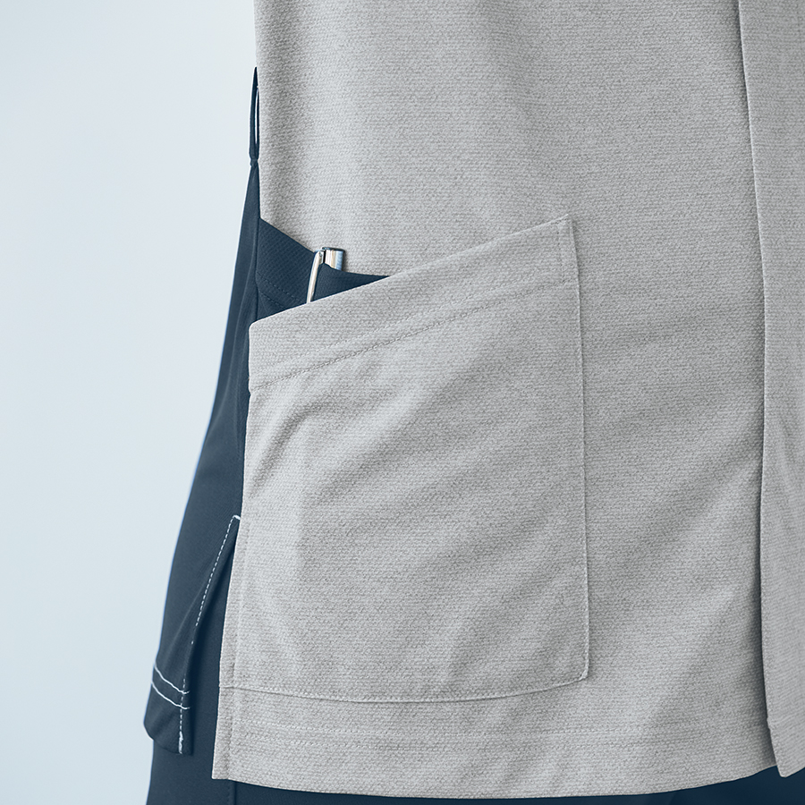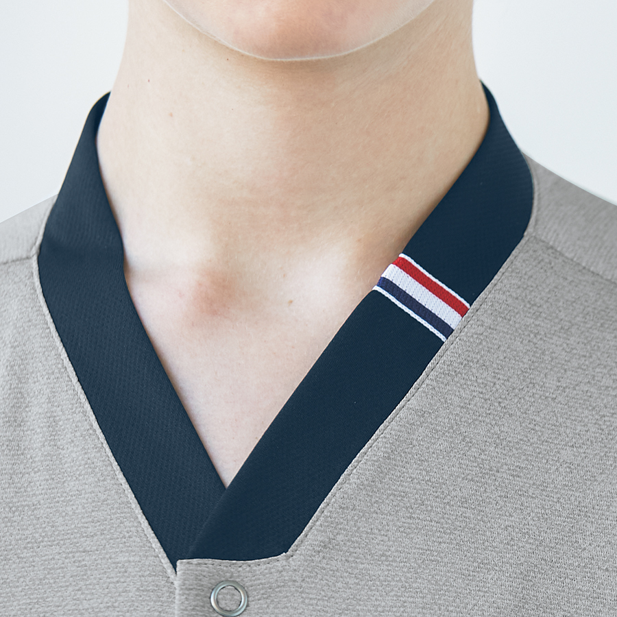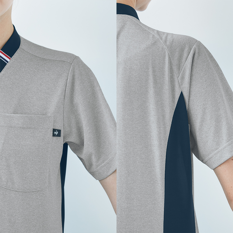 汗をかいてもサラサラで、オールシーズン快適なニットスクラブに、同デザインのフロントジップタイプが登場。ヘアメイクを気にせずに着替えが可能です。