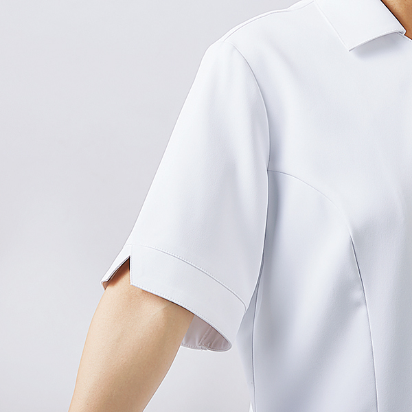 ナースとしての誇りを感じさせる、上品な襟付きジャケット。【プロ・プライド】は現役の看護部長とアドバイザーを迎えて「マネジメント視点から看護師のユニフォームを考える研究会」を立ち上げ、ユニフォームの必要条件や役割などを抽出し、これまでのノウハウや知見も交えて開発にあたりました。さまざまな議論を重ね、「患者様に提供できる価値」という視点から、ユニフォームに求められる機能、デザイン、カラーなどを精査。看護師の方々が、患者様のためにそのスキルを最大限に発揮できるユニフォームをめざしました。プライドを持って働くプロフェッショナルにふさわしい、新しいメディカルウェアをご提案します。