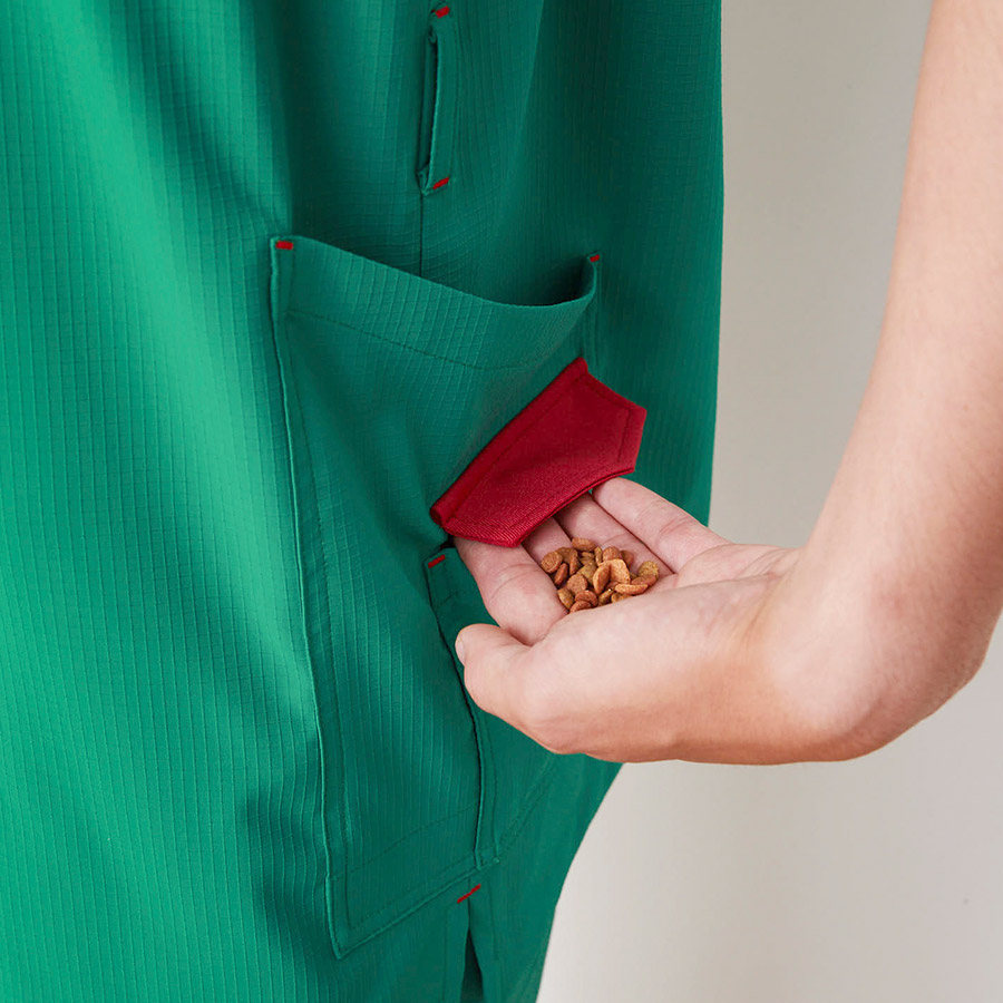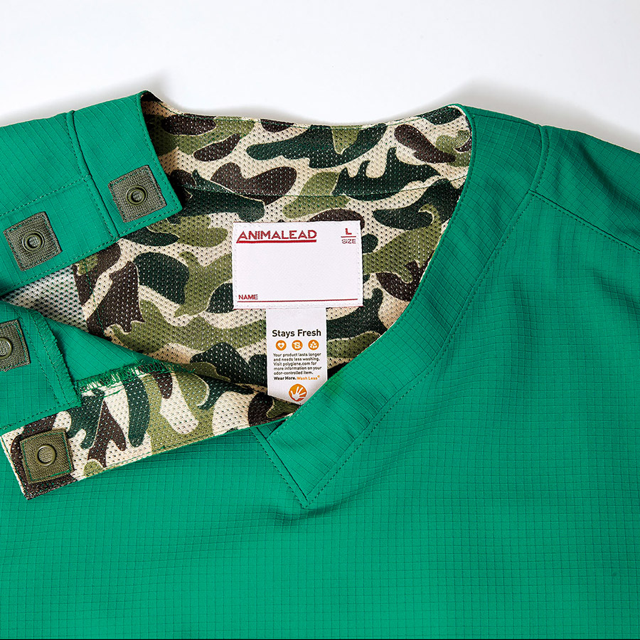 美しさと高機能を備えたスマート・スクラブスタンダードラインの基本的な性能に加え、さらに素材・機能・デザインにもこだわった「アニマリード」のハイライン。使用する素材「リップストップ」は丈夫でありながらも、爽やかな着心地。格子状の織り柄は上質さも感じさせる、高機能と美しさを兼ね備えた1枚です。