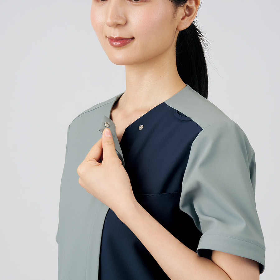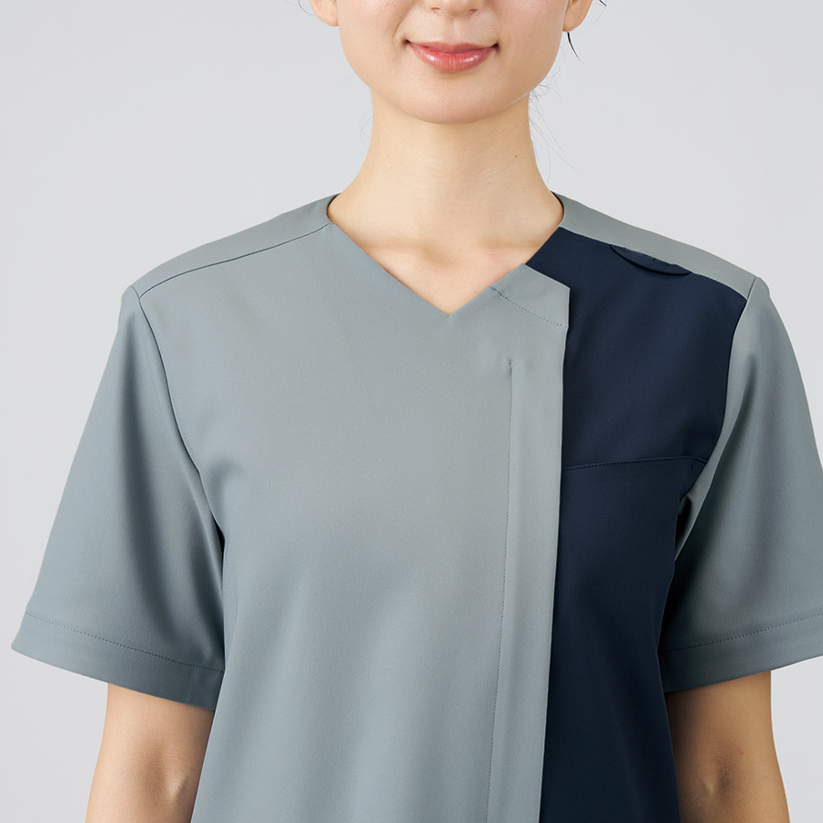 バイカラー配色が印象的な男女兼用ジップアップスクラブ。
