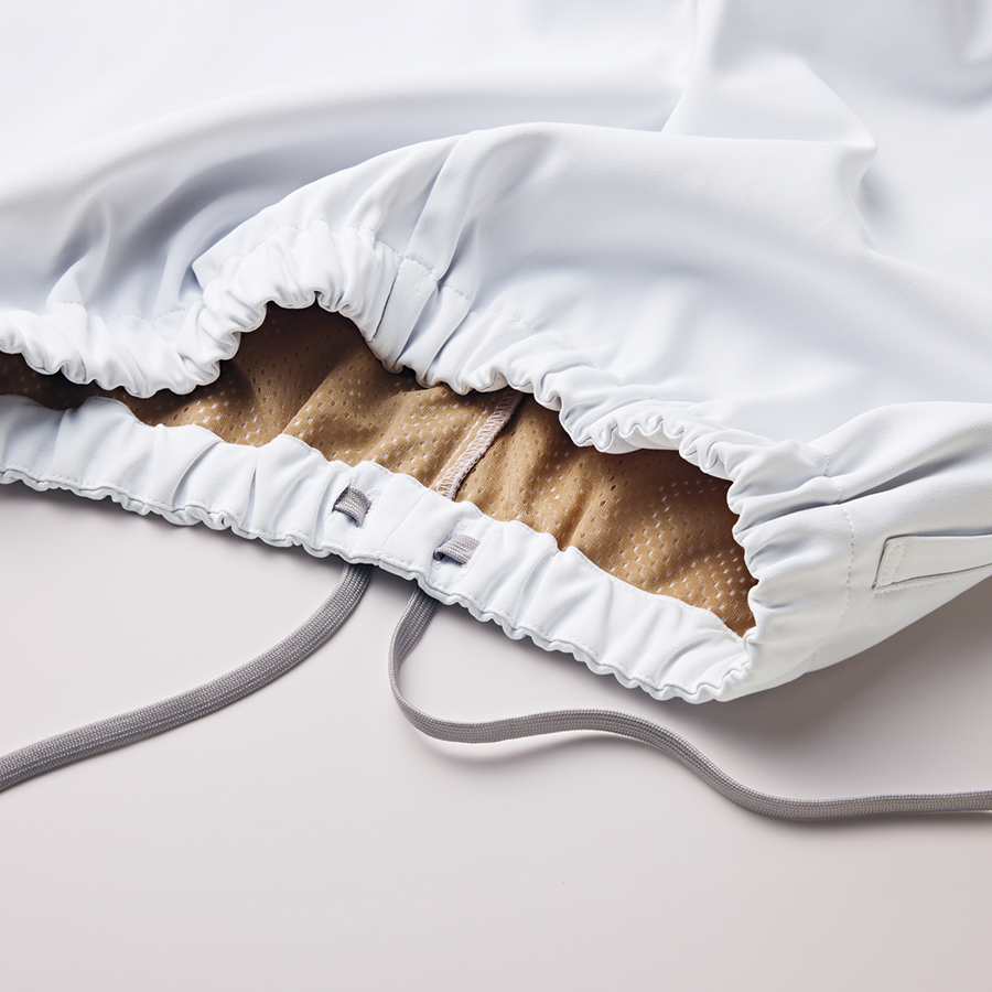 なめらかな風合いとニットのような伸縮性で、どんな動きにもフィット。適度なハリ・コシ感もあり、きれいなシルエットをキープします。