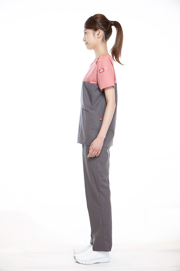 アメリカ発のスクラブを小柄な日本人体型にフィットするようにリニューアル。ジャストフィットサイズのスクラブが快適な現場ワークをサポートします。