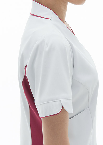 やさしいイメージの襟元と袖口のデザインが患者さんに癒しを与えます。