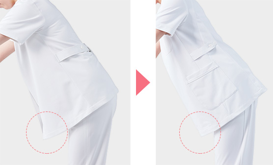 がんばるお母さんと赤ちゃんを守りたい。そんな思いを込めて、快適に動ける安心設計にとことんこだわりました。お腹をやさしく包み込む安心のサポート感、なのに窮屈感はゼロ。シルエットもキレイ。お母さんナースに捧げる自信作です。