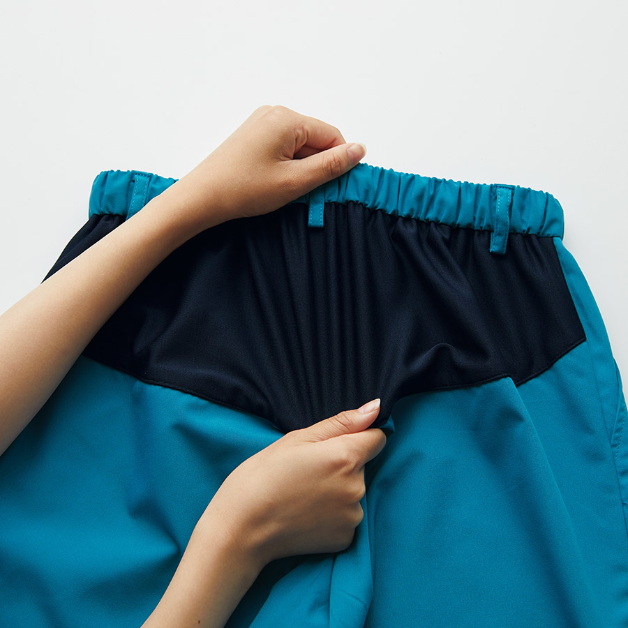 新開発のニット素材を使用「動きやすく塩素剤でも色落ちしない」スクラブパンツ