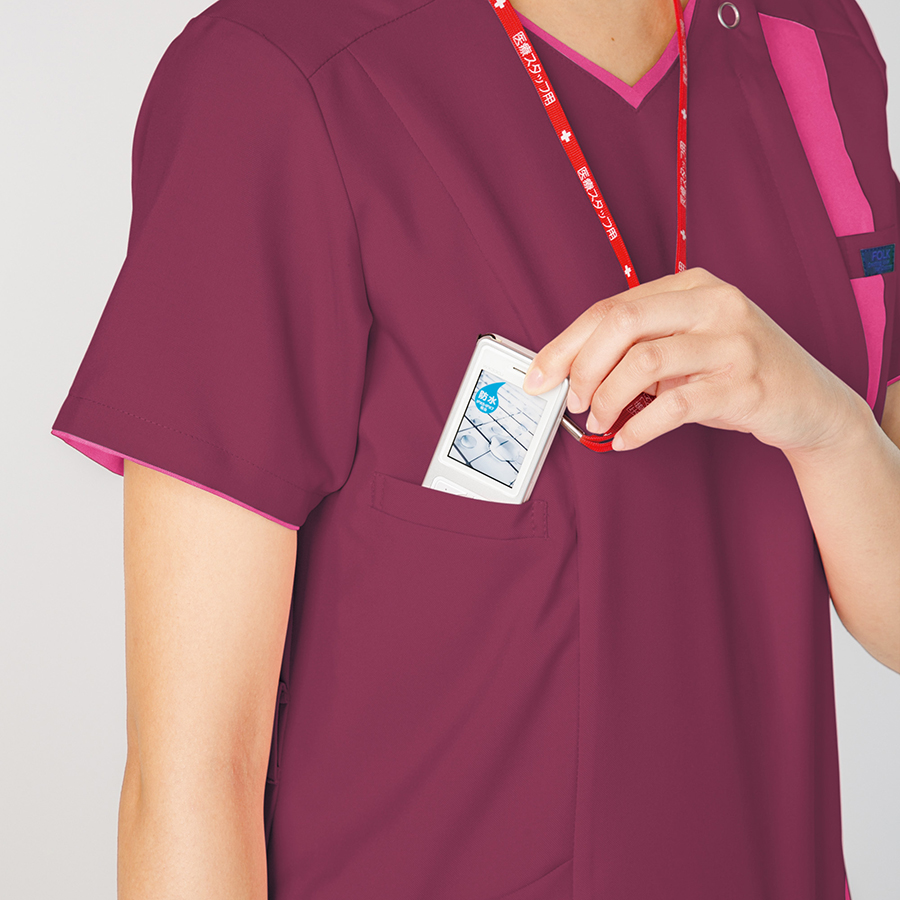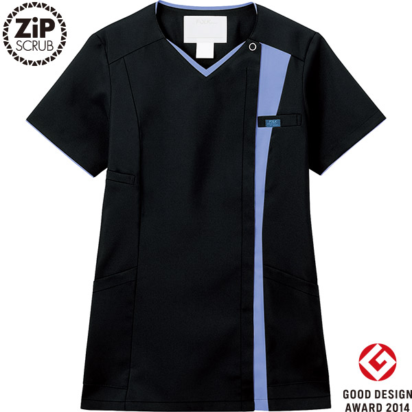 フォーク株式会社のジップスクラブ(ジップアップスクラブ)シリーズは、2014年度のグッドデザイン賞を受賞致しました。【審査員の評価】白衣からスクラブへ人気が移る傾向を捉え、欧米体型で作られた輸入スクラブフォルムの欠点を日本人体型に合わせて変更し、ジッパーやポケットを付けるなど使いやすさを考慮して機能性を向上した。カラーについては、はっきりとした主張のある色を用いることで、院内環境や着衣する看護師の意識を変えた点を評価した。色の選択については、今後さらなる可能性の追求に期待する。