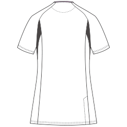 ボディラインをすっきりと見せる切り替え胸元が見えにくい襟ぐりなど、