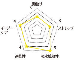ドライタッチの高密度のツイル組織で適度なハリコシがあり肌離れが良いのが特徴。