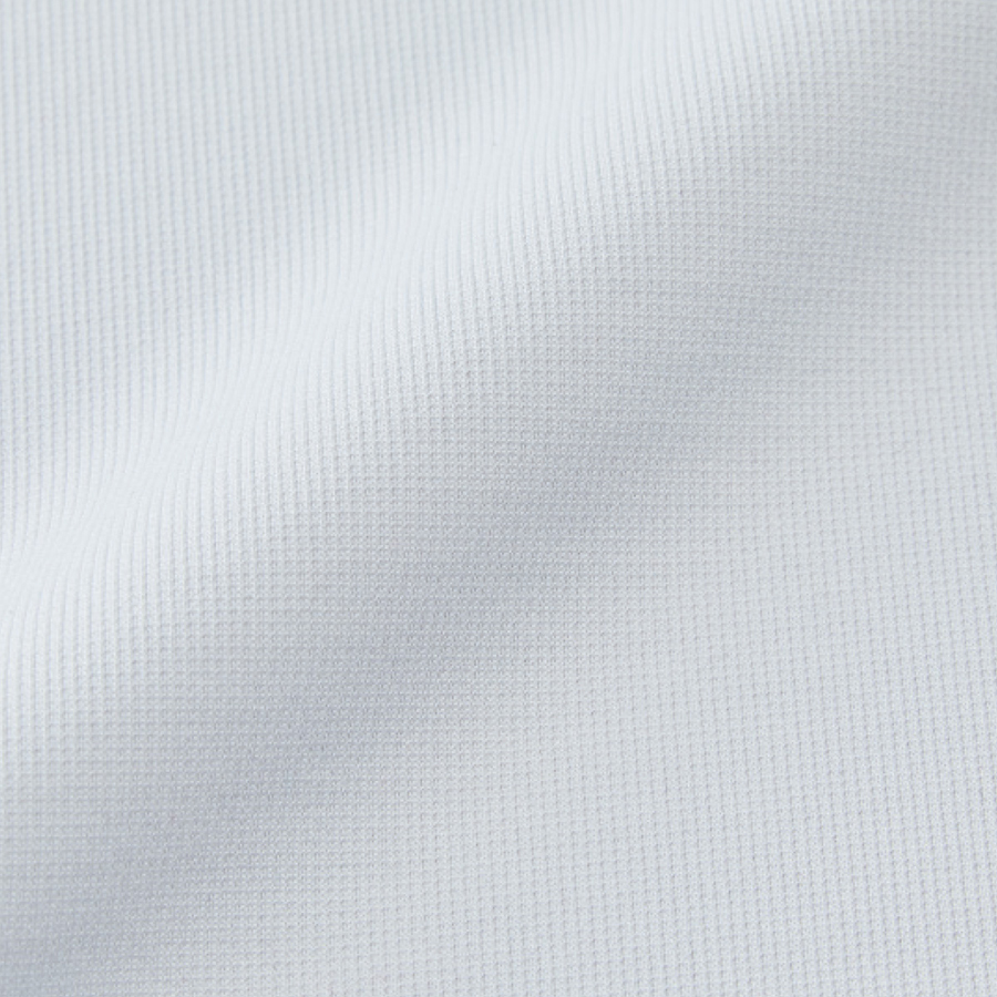 ニットの魅力である“伸び感”をしっかりと保ち、やわらかな着心地でリラックス感のある素材。内側には、紫外線透過抑制効果(日焼け対策)と透け防止効果のある機能糸「サラクール」を使用。快適な着心地でワークをサポートします。