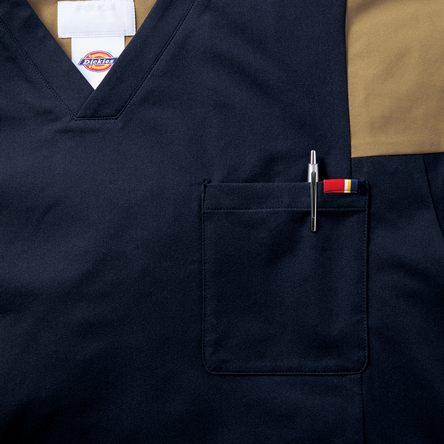 Dickies(ディッキーズ)ならではの頑丈さに、日本の医療現場にふさわしいデザインにアレンジ。