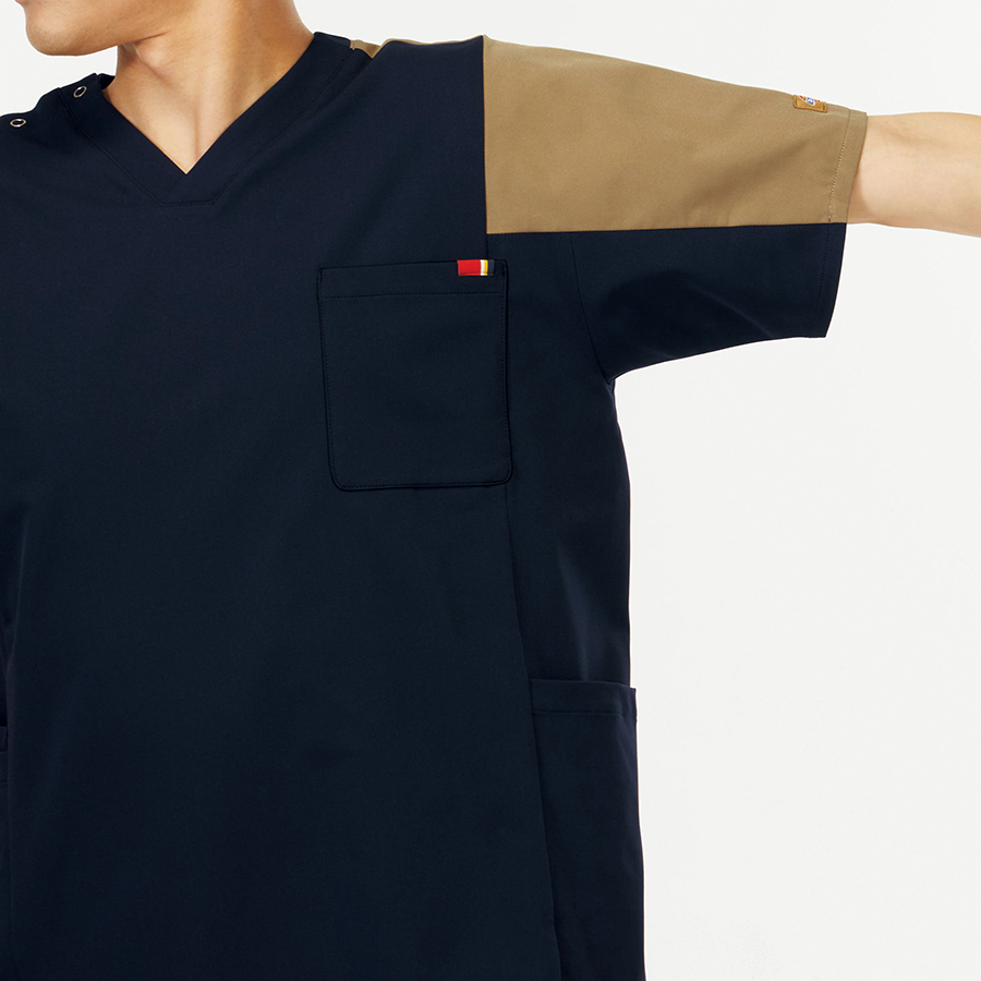 アメリカ発のスクラブを小柄な日本人体型にフィットするようにリニューアル。ジャストフィットサイズのスクラブが快適な現場ワークをサポートします。