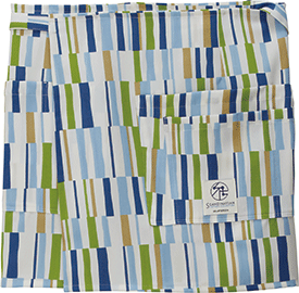 腰ひもを前で結ぶユニセックスなエプロンに、北欧のデザイナーによる5つのスカンジナビアンパターンを落とし込みました。