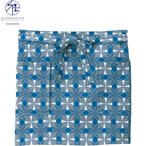 北欧らしいポップでモダンなプリントに気持ちが華やぐエプロン。腰ひもを前で結ぶユニセックスなエプロンに、北欧のデザイナーによる5つのスカンジナビアンパターンを落とし込みました。オシャレなデザインに加え、大容量ポケットや、スリット、バッククロスなど機能性も抜群です。胸当てタイプよりも面積が小さいからこそ、ほどよいアクセントで、明るい印象を振りまきます。