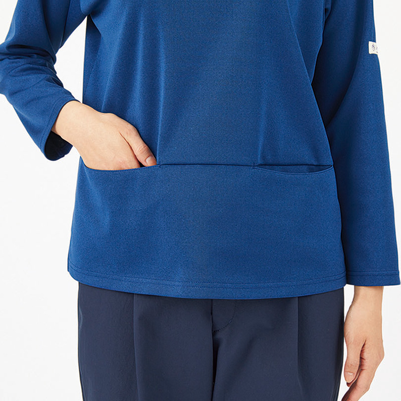ニット素材で動きやすく、オシャレに着られるプルオーバー。色に深さを感じるミックス調の中肉厚で、さらにメンテナンスにも優れた安心素材です。型崩れしにくく扱いのラクなニット素材のプルオーバー。ボートネックデザインで腰のスリットポケットつき。マチつきでチラ見えの心配がないボートネック、腰のデザインポケットや、腕の動きをスムーズに助けるARM360°など、機能面も充実しています。
