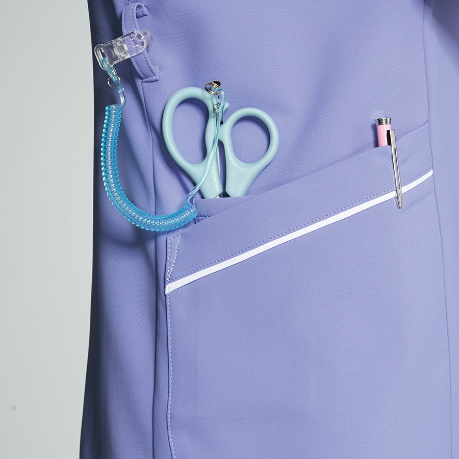 顔まわりに白のアクセントを効かせた清楚で華のあるデザイン。フォーク株式会社のジップスクラブ(ジップアップスクラブ)シリーズは、2014年度のグッドデザイン賞を受賞致しました。【審査員の評価】白衣からスクラブへ人気が移る傾向を捉え、欧米体型で作られた輸入スクラブフォルムの欠点を日本人体型に合わせて変更し、ジッパーやポケットを付けるなど使いやすさを考慮して機能性を向上した。カラーについては、はっきりとした主張のある色を用いることで、院内環境や着衣する看護師の意識を変えた点を評価した。色の選択については、今後さらなる可能性の追求に期待する。腕を上げたり膝をまげたりと、大きな動作が求められるナースの仕事。ワコールHIコレクションは独自の「皮膚伸展基準線理論」により、動きやすさと美しさの両立を実現しました。さらに、透けにくい特殊素材の採用と軽量化により、今までウエアに感じていたストレスも解消。ぜひ、着心地の違いを実感してください。