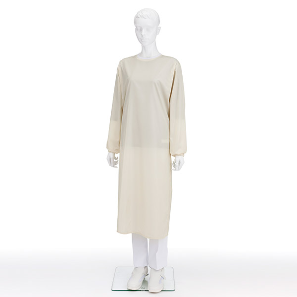 繰り返し洗って使えるアイソレーションガウンです。撥水加工ポリエステル高密度織物を使用。簡易処置・軽作業・面会時の予防用としてご使用いただけます。バリア性LEVEL1相当(ANSI/AAMI PB70規格)