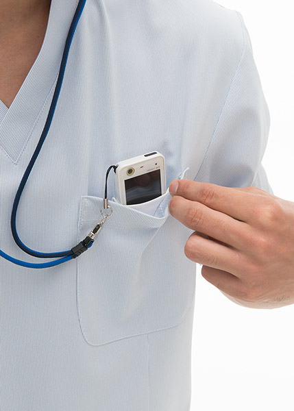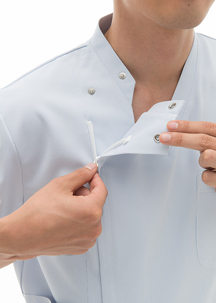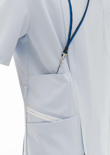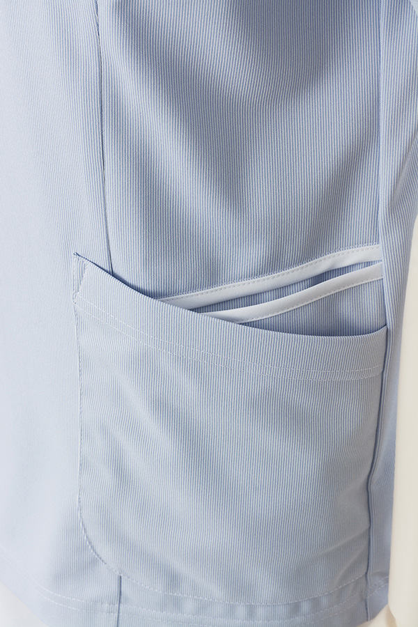 涼しさと動きやすさを両立し、デザイン性の高い素材を使用。スクラブとジャケットを融合させた男性用の新しいスタイルです。