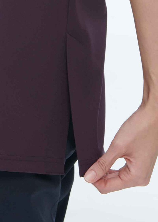 ハリ感のある織物素材でシルエットがきれいに保たれ、さらに身体のラインを拾いにくい安心の着用感です。