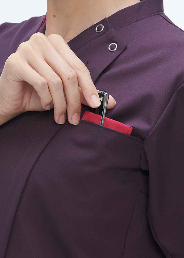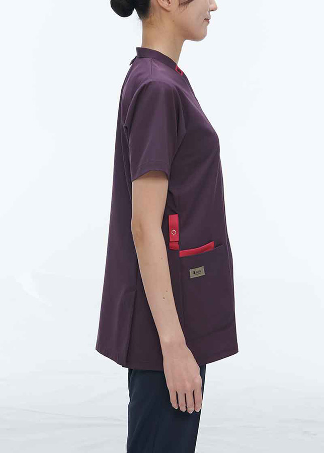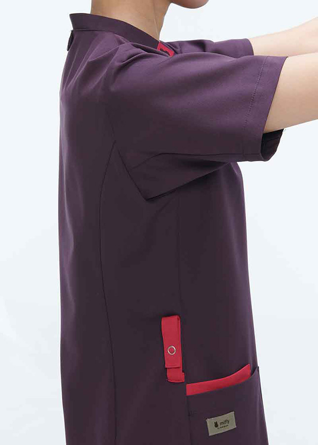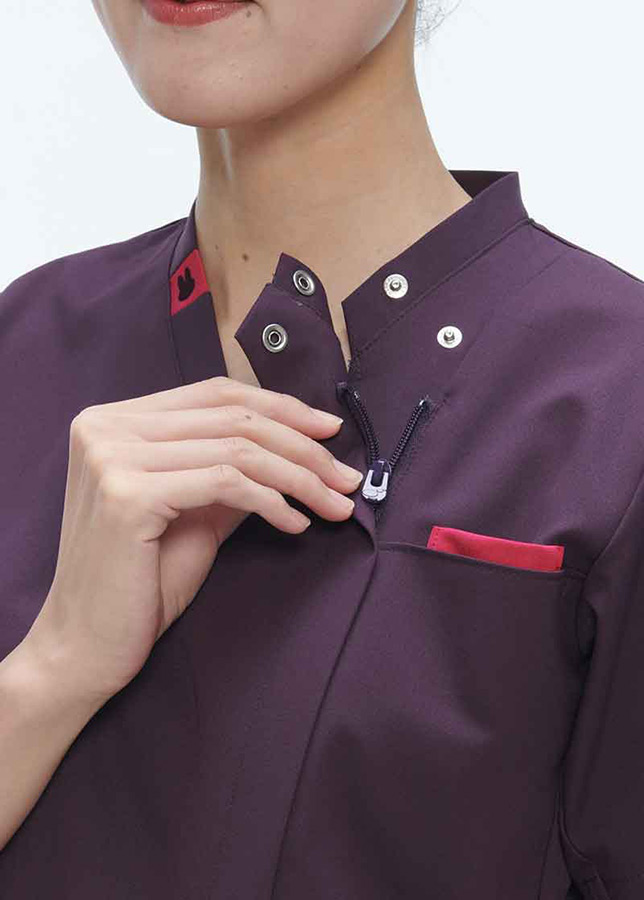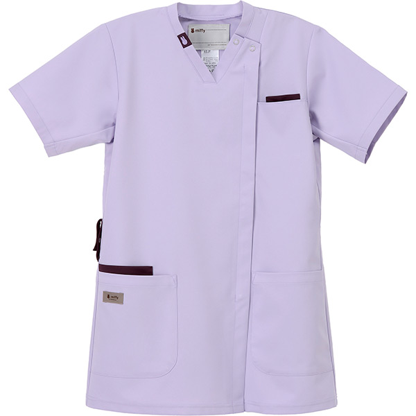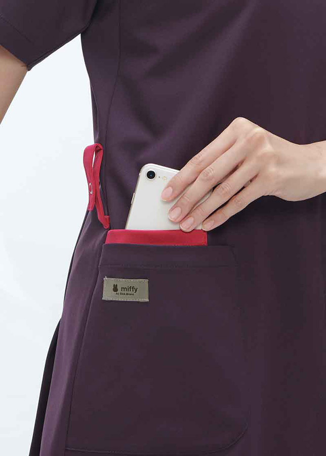 衿元のmiffyをモチーフにしたワンポイント刺繍がポイントの男女兼用スクラブ。軽くてストレッチの効いた素材を使用しエアアームカットを搭載。サイドベンツ、ストラップ止め、スマホポケットなど機能性も充実。高機能で快適な着心地とさりげないmiffyがモチベーションを高めます。▼▽▼ 商品の詳細情報はナガイレーベン公式サイトよりご覧いただけます ▼▽▼