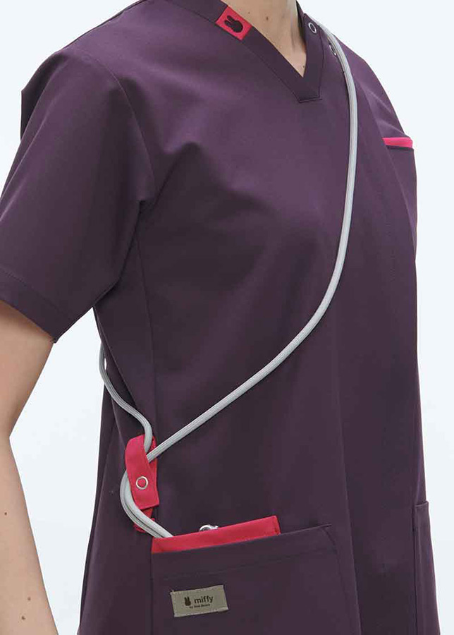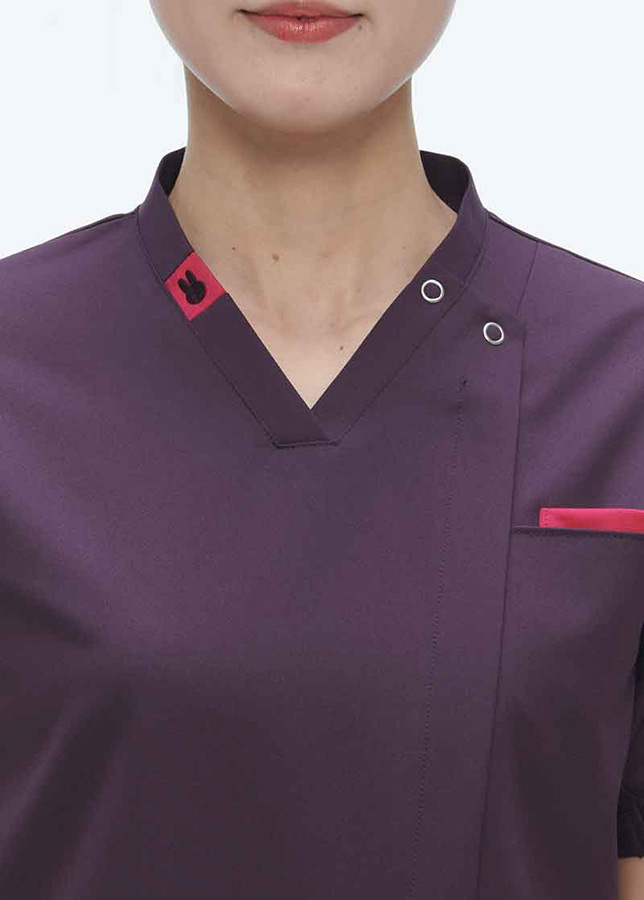 衿元のmiffyをモチーフにしたワンポイント刺繍がポイントの男女兼用スクラブ。