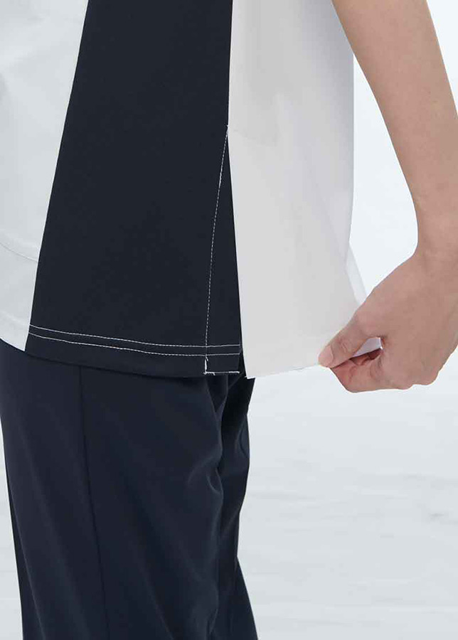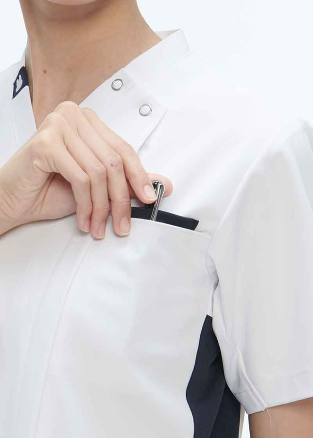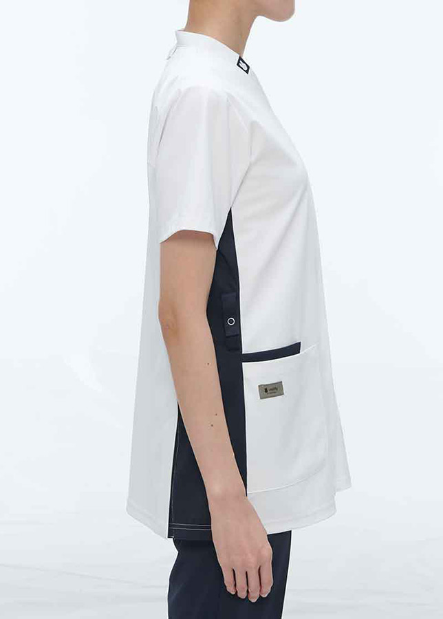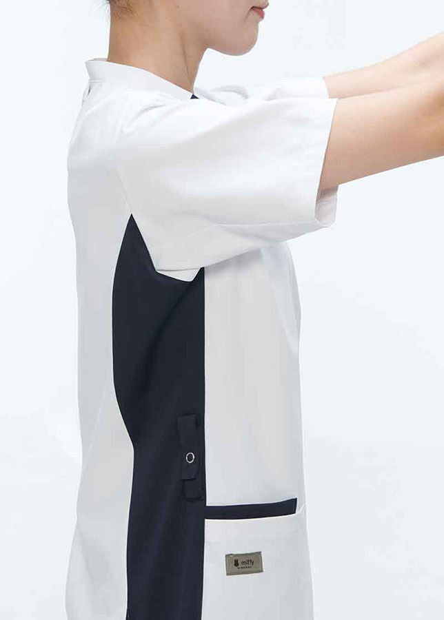 衿元のmiffyをモチーフにしたワンポイント刺繍がポイントの男女兼用スクラブ。軽くてストレッチの効いた素材を使用しエアアームカットを搭載。サイドベンツ、ストラップ止め、スマホポケットなど機能性も充実。高機能で快適な着心地とさりげないmiffyがモチベーションを高めます。▼▽▼ 商品の詳細情報はナガイレーベン公式サイトよりご覧いただけます ▼▽▼