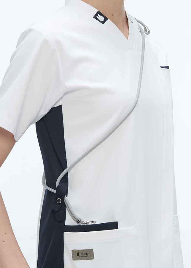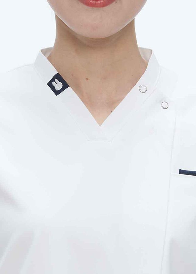 衿元のmiffyをモチーフにしたワンポイント刺繍がポイントの男女兼用スクラブ。