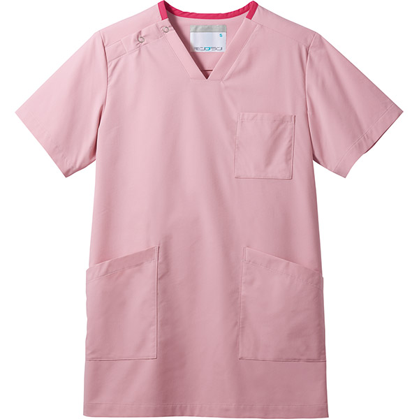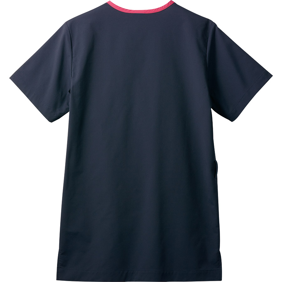 着た瞬間に違いがわかる軽やかさと心地よいストレッチ性、清涼感を兼ね備えたワンランク上の快適性。多彩なカラーバリエーションとリーズナブルな価格で展開するニュースタンダードスクラブ。生地機能は制菌・制電・吸汗機能を備えています。着脱が簡単な肩口スナップテープ仕様。後ろ襟ぐり部分の配色切り替えもデザインアクセント。