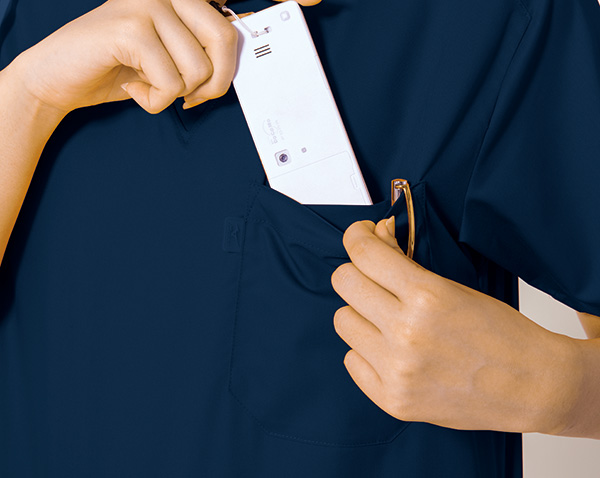 涼しく快適な素材とMizuno独自の動的機能裁断法DynamotionFit、風合いやストレッチ性にも徹底してこだわったスクラブ。
