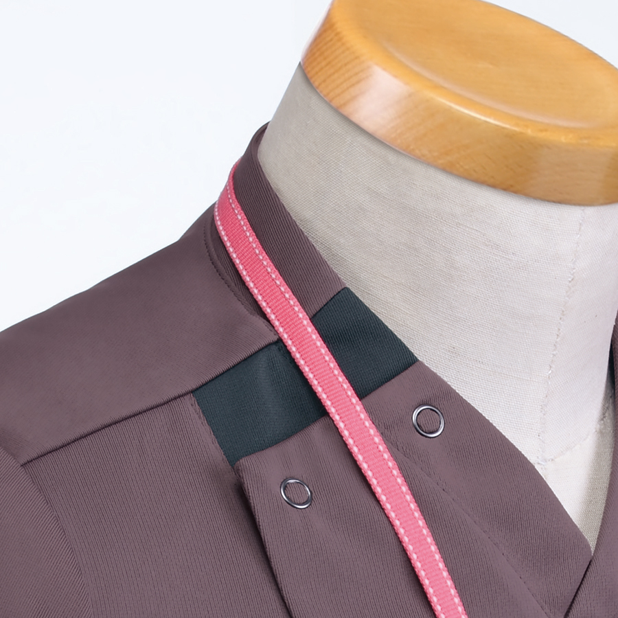 左胸ポケット(ネームホール付)、サイドファスナー仕様、襟元スタンド、脇スリット、両脇ポケット(右ポケットダブル仕様)、後右脇ポケット、右脇ループ付、左脇端末ポケット
