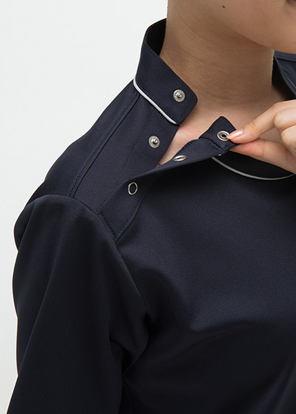 より動きを要する日常業務において、動きやすいストレッチ性と涼感機能を持った素材を活用し、ポロシャツ感覚で着用できる専門性の高いケーシータイプのデザインです。