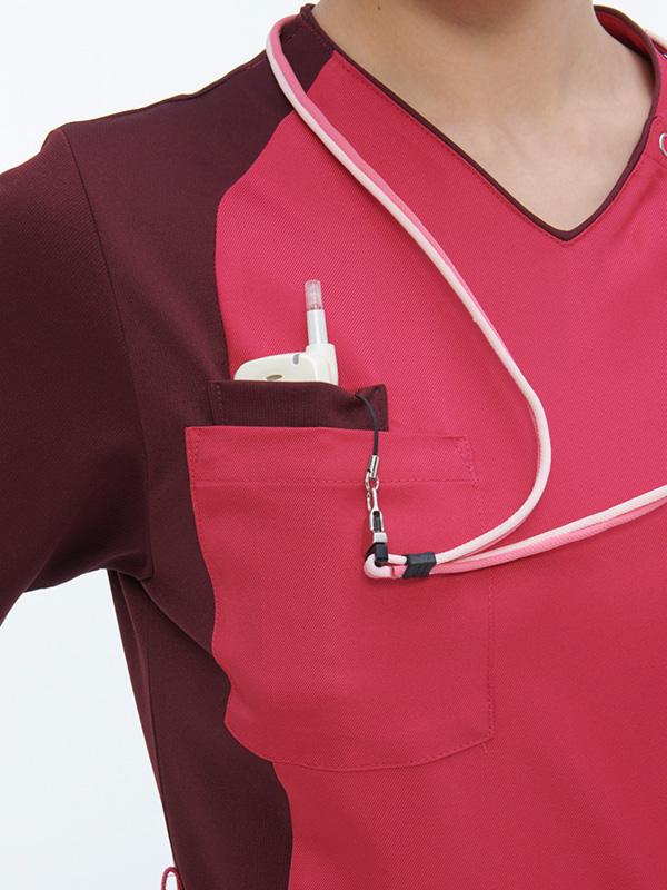 アシンメトリーなデザインが新鮮で自由なイメージのスクラブです。涼感機能のあるニット素材の使用量を従来の2倍に増やし、動きやすさと通気性をアップさせています。適度なゆとりのあるシルエットになっています。▼▽▼ 商品の詳細情報はナガイレーベン公式サイトよりご覧いただけます ▼▽▼