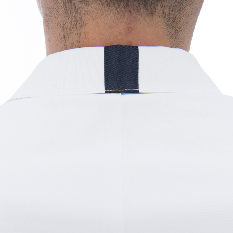 襟、ボタンそしてポケットの配色が全体を引き締め信頼感を与えます。