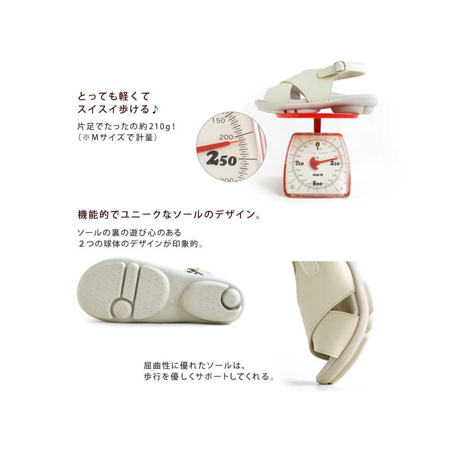 インソールの土踏まず部分には<指圧ボール>があしらわれ足の凹凸に沿ってツボにはまるように絶妙にフィット!