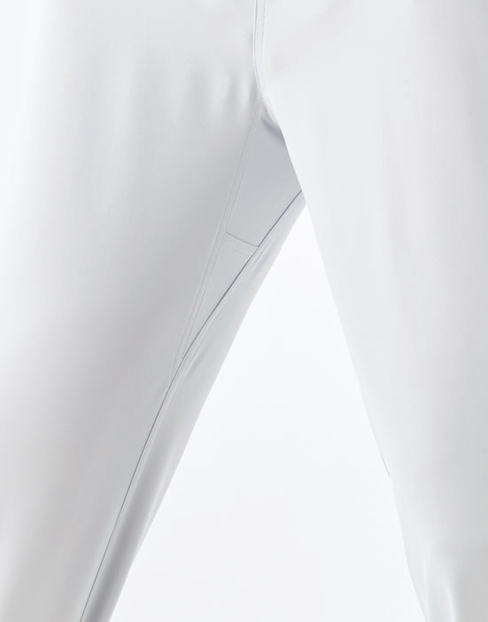 介護・医療現場に必要なさまざまな機能とアイディアを盛り込んだスペシャルスクラブ。ツートーンの配色がスタイリッシュな印象を演出します。ドライ感のある生地は透け防止素材で、明るめカラーでもインナーを気にせず着用できます。