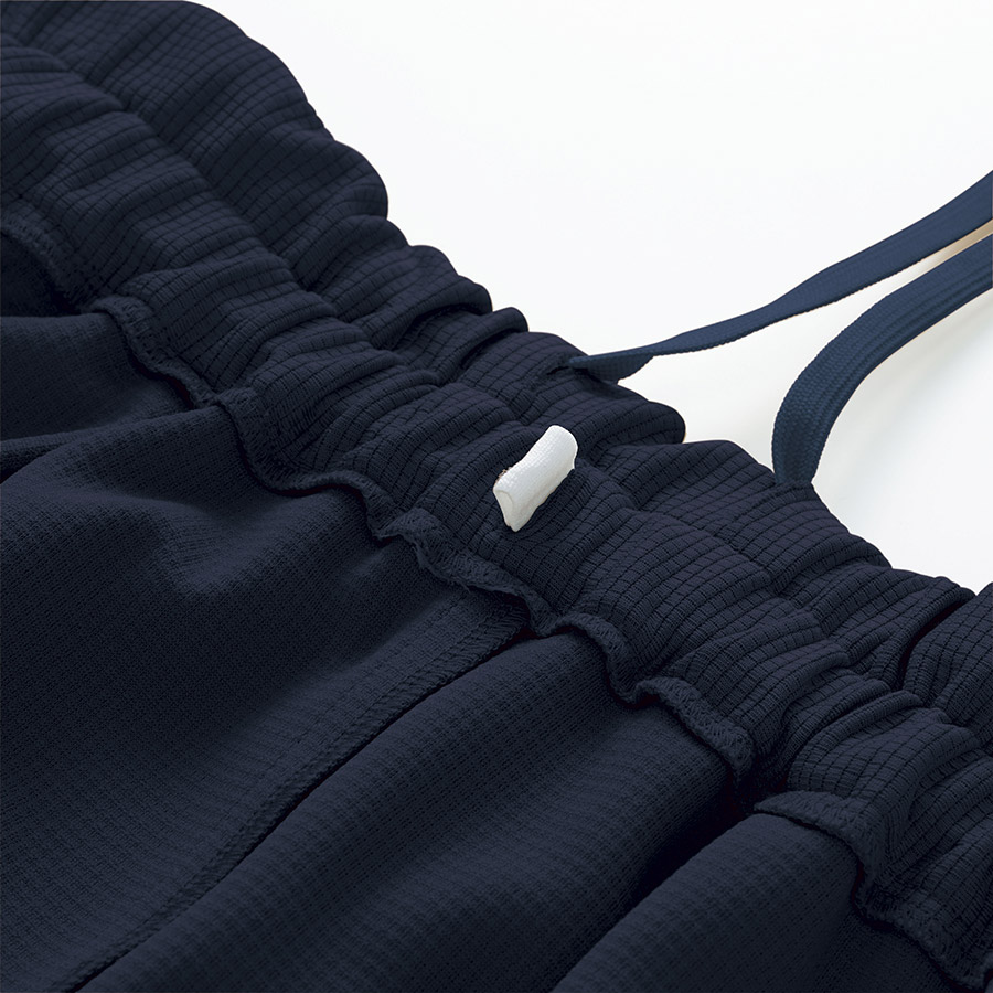 ブ軽くて柔らかいブロックニットは長時間の着用でも疲れにくいです。ストレッチ性に富んでいるので、忙しい現場での動きを妨げません。裾にかけて細めに仕上げた、履く人のシルエットをきれいに見せるこだわり仕様です。入れ替え可能なウエストゴムで長く着用いただけます。