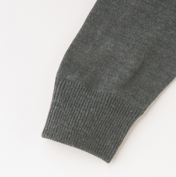 ウール混のウォッシャブルニットを使用。ご家庭で洗濯ネットに入れて洗えるイージーケアで経済的です。毛玉になりにくい坑ピル加工