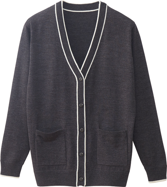 ホワイトラインが上品な印象のデザインカーディガン。